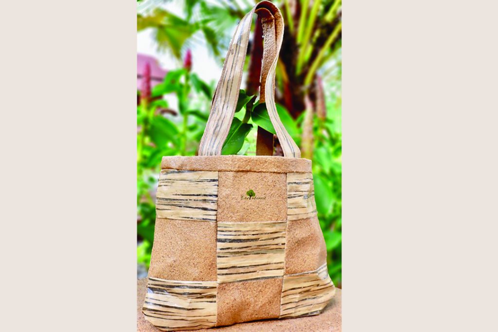 村の自然素材からエコフレンドリーなカバンを製造しています。