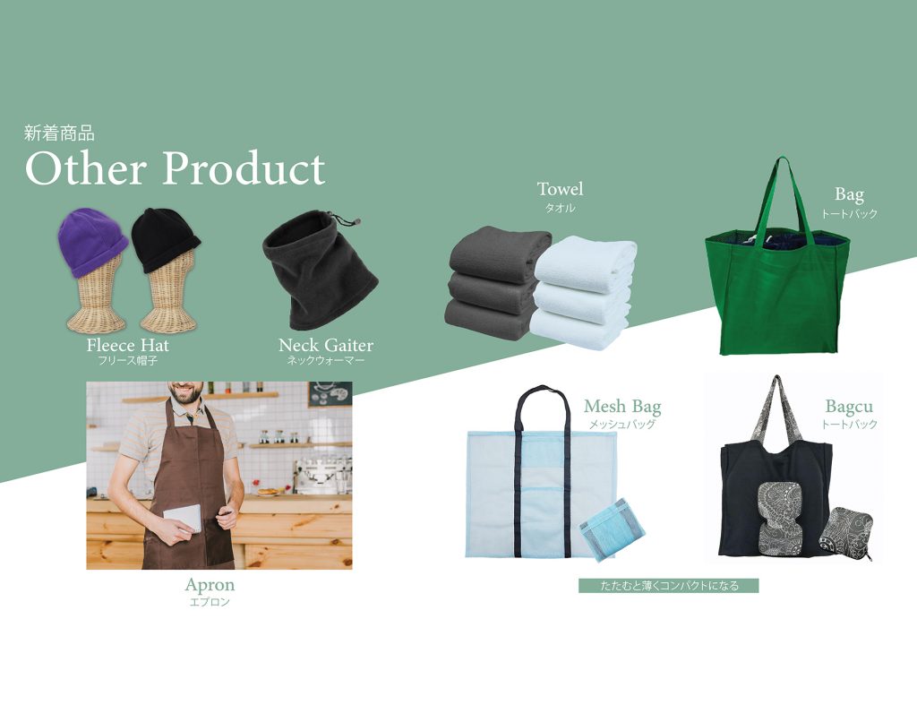 リサイクルポリエステルやオーガニックコットンなどのサステイブル製品を取り扱ってます。